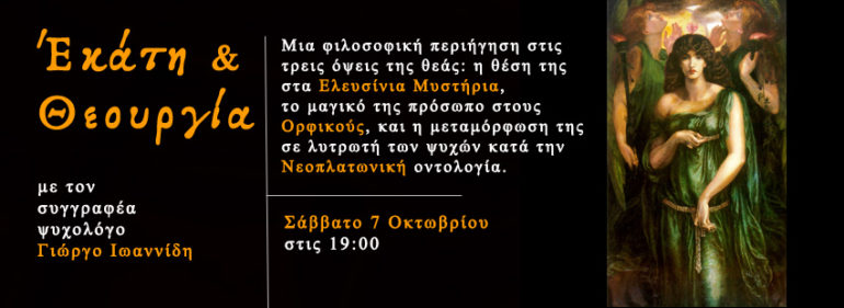 Οι εκδόσεις Δαιδάλεος σας προσκαλούν στη νέα ομιλία του ψυχολόγου – συγγραφέα Γιώργου Ιωαννίδη, με τίτλο «Εκάτη & Θεουργία».