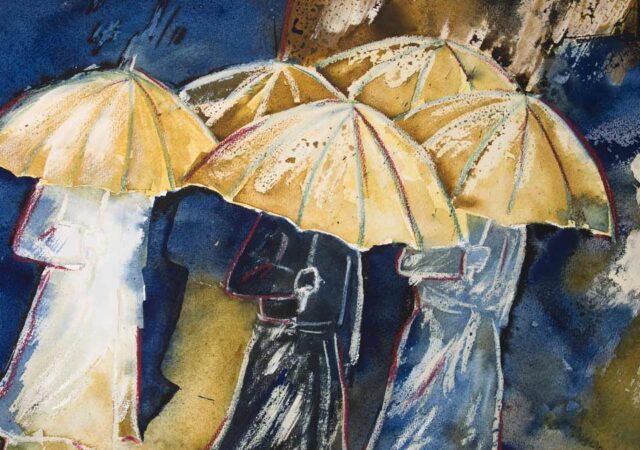 Πρόσωπα στη βροχή μάτια φοβισμένα, σχεδόν τρελά τρέχουν να κρυφτούν, πού πάνε σε νιώθω να κρυώνεις ακατάληπτα συλλαβίζεις στίχους άγνωστων ποιητών οι άνθρωποι είναι περίεργοι όταν βγαίνουν έξω στη βροχή χαμογελούν υστερικά ή σωπαίνουν βρίζουν τον κακό τους τον καιρό…